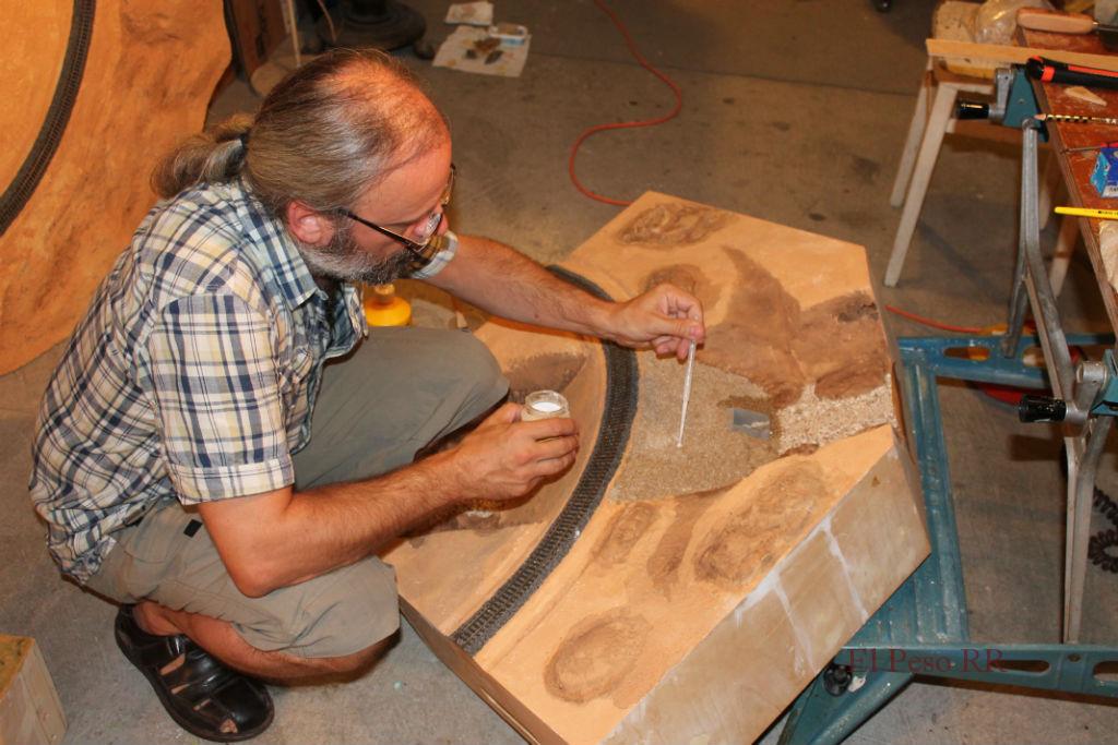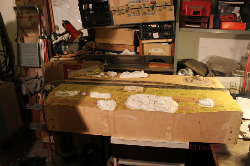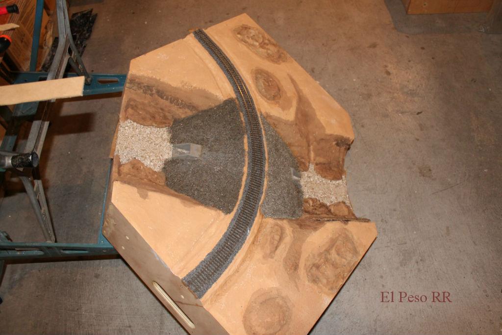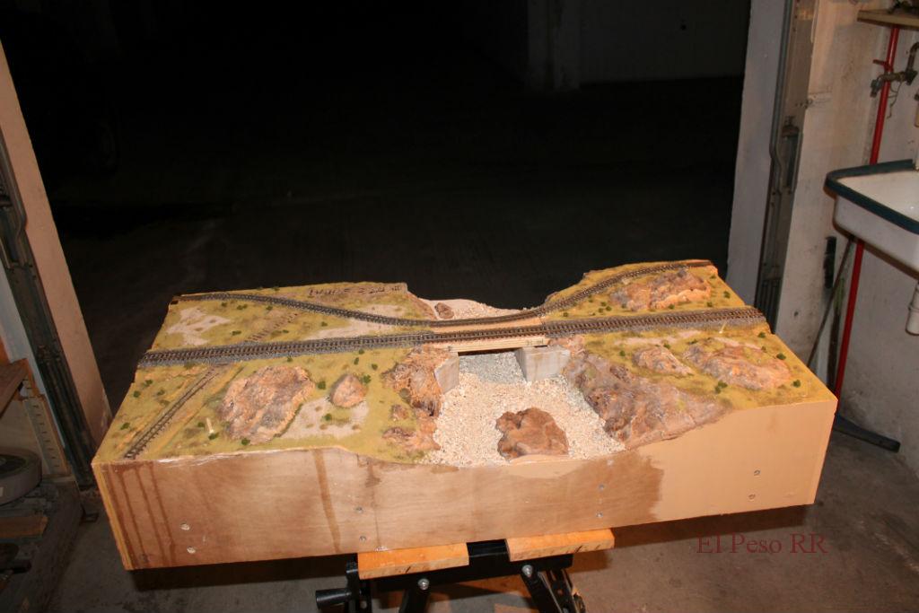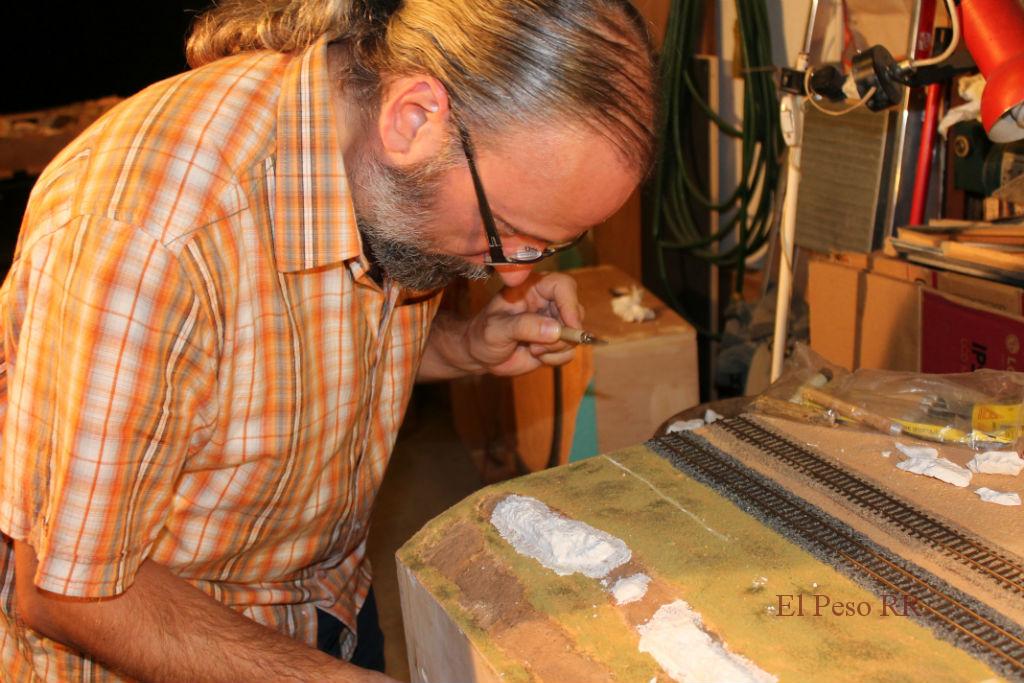 While Davor is on vacation Oli and Boki continued work on modules. We finished dry creek on Davors module. Oli started ground cover on his fill and Boki placed additional rocks on Olis station modules.